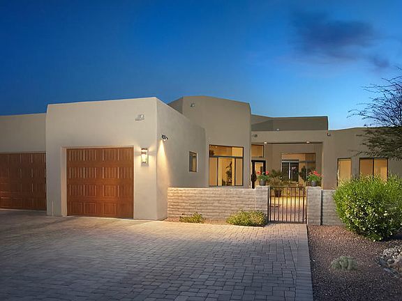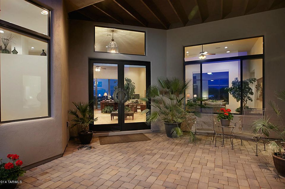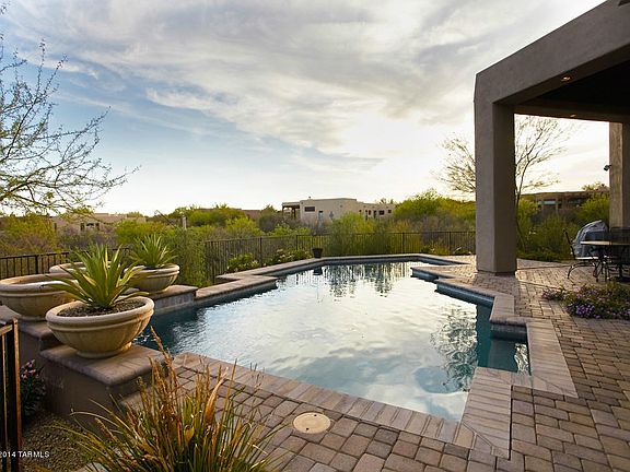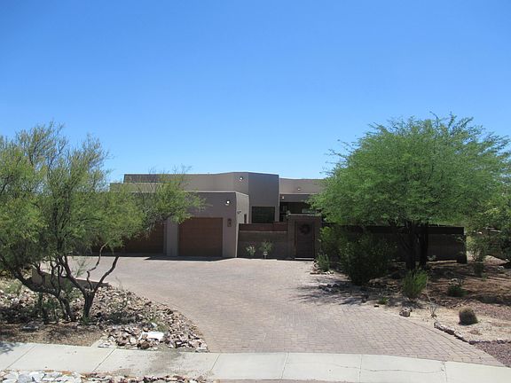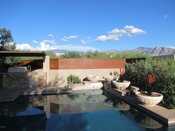 Wonderful Custom Built Contemporary with Private Front Courtyard and Extensive Rear Views. Dramatic Glass Entry Doors enter into a Massive Open Plan great for entertaining. Beautiful Tile Floors. Large Wall of Glass opens to a Wraparound Paver Patio, Custom Pebbletec Pool, Built in BBQ. Designer Kitchen with Island, Tall Cabinets, Granite Countertops, Bev Cooler, New GE Monogram 48 Built In Refrigerator, DW, 6 Burner Gas Cooktop, Double Oven, Warming Drawer. Elegant Master Suite with Luxurious Bath, Jetted Tub, Dual Shower Heads and 6 Body Sprays. Additional 3 Large Bedrooms and 3 Baths plus Den. 8 ft Solid Wood Doors throughout. New Dual System HVAC. Large 3 Car Garage with Epoxy Floor and Built in Cabinets. Newly painted. Enclosed Block and Aged Metal Fencing around Property. GREAT HOME.