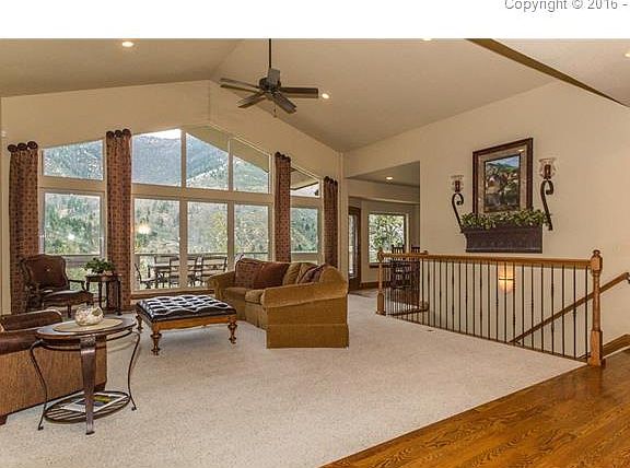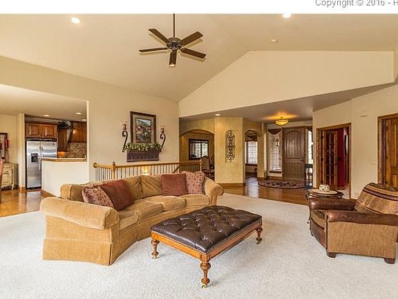 Nestled on 2.5 acres in the gated community of Pikes Peak Mountain Estates, at the base of the iconic Pikes Peak, sits this exquisite custom built home w/over 4,000 sq.ft. This luxurious custom home was built by the 5-time MAME award winning builder Solid Rock Custom Homes, ensuring that no expense was spared & every attention to detail was made. Feel away from it all, yet close to everything! Step inside & you are greeted w/gleaming hardwood floors that extend throughout the main level. The spacious dining room is perfect
