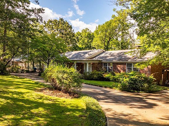 Lovely mid-century architectural home located on an acre of wooded land in the heart of the city. Great floor plan for family living and entertaining with plenty of room for everyone! Beautiful hardwood floors and large windows with picturesque views of the surrounding trees. Formal living room, spacious kitchen and dedicated dining area. Open family room flanked by original gas log brick fireplace with direct access to fabulous deck with stunning vista views overlooking the large, tranquil private backyard. Separate primary bedroom on the main level with ensuite bath. Two additional guest bedrooms and bath on the main level. The downstairs layout is ideal with a paneled, second living area featuring a stone gas log fireplace with sliding glass doors leading out to a covered patio and fenced backyard. Fourth bedroom and bath also located on this lower level. Additional space perfect for an art studio or private office. Laundry room located on lower level connected to the abundant storage area. Two car garage and wide circle driveway with additional side parking pads. Come see!