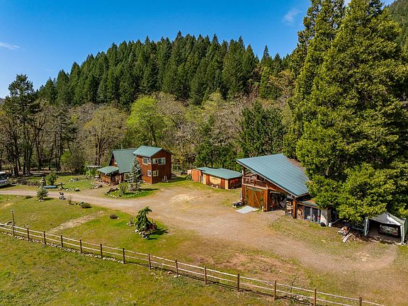 Discover your private retreat with breathtaking views! Nestled just a short distance from the Kerby Peak trailhead, this charming 2-bedroom, 1.5-bath home offers 1,139 sq ft of updated comfort and versatility. The renovated kitchen is perfect for home chefs, while a detached bonus room provides ideal space for guests, a rental opportunity, home office, or creative studio. Enjoy outdoor living with a seasonal creek flowing along the back of the property, a cozy firepit for gatherings, and a lush garden bed that is fully fenced with irrigation. The greenhouse—fully equipped with water and electricity—makes gardening a dream. Additional highlights include full RV hookups, a shop/garage, workshop, multiple sheds, carport, chicken coop, and two large dog kennels. With close access to BLM land, this property is perfect for outdoor lovers seeking both adventure and peacefulness. Don't miss your chance to own this unique slice of Southern Oregon paradise!