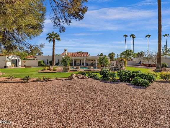 A Rare find! Beautiful property on a 38,089 Sq Ft lot with endless opportunities to create your own Masterpiece. Home boasts an expansive open floor plan with T&G Wood vaulted ceilings. Great room with open kitchen concept swears to be a designer's dream. Original charming bee-hive fireplace & wet bar in family room. Multiple French doors lead from all north facing spaces to covered patio with BBQ grill, outdoor shower and multiple sitting & dining areas. Diving pool with water feature for those sunny AZ days. Multi use pool house recently added. Immaculately landscaped front and back. Beautiful curb appeal! Circular driveway, 3 car side entrance garage and RV gate. PRIME Location. Neighborhood is BOOMING with new construction & custom renovations Seller has draft plans available for an additional garage.
