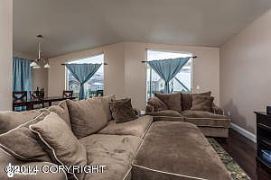 Incredible views of the Chugach in this well-kept and nicely remodeled East Anchorage home. Fresh paint throughout, new plank style laminate flooring and baseboard trim in main living area, vaulted ceilings, lots of natural light, complete bathroom remodel, and new carpet in master bedroom. Carpet downstairs new in '11. This property is in excellent showing condition. Close to base.
