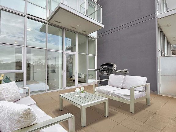 River District's finest Concrete Avalon 2. Get ready for summer with your massive south facing 324ft outdoor space! This near new Townhouse-like 1 bedroom + Den offers an excellent open floorplan, vaulted 12' ceilings, floor to ceiling windows. Stylish home w/ high end modern finishes incl Air Conditioning, NEST control, USB plugs, NuHeat, top of line KitchenAid & JennAir, gas range, laminate flooring, roller blinds. World class Amenities that incl SkyLounge/SkyBar, fitness rooms, Two Guest suites, garden area, meeting & party room, remaining 2-5-10 warranty. Located in a new vibrant community w/parks, riverfront paths, shops, restaurants, Town Centre, Save-On foods, Starbucks & much more! Parking & Storage included. By appointment Sat & Sun Apr 9/10 1-3pm
