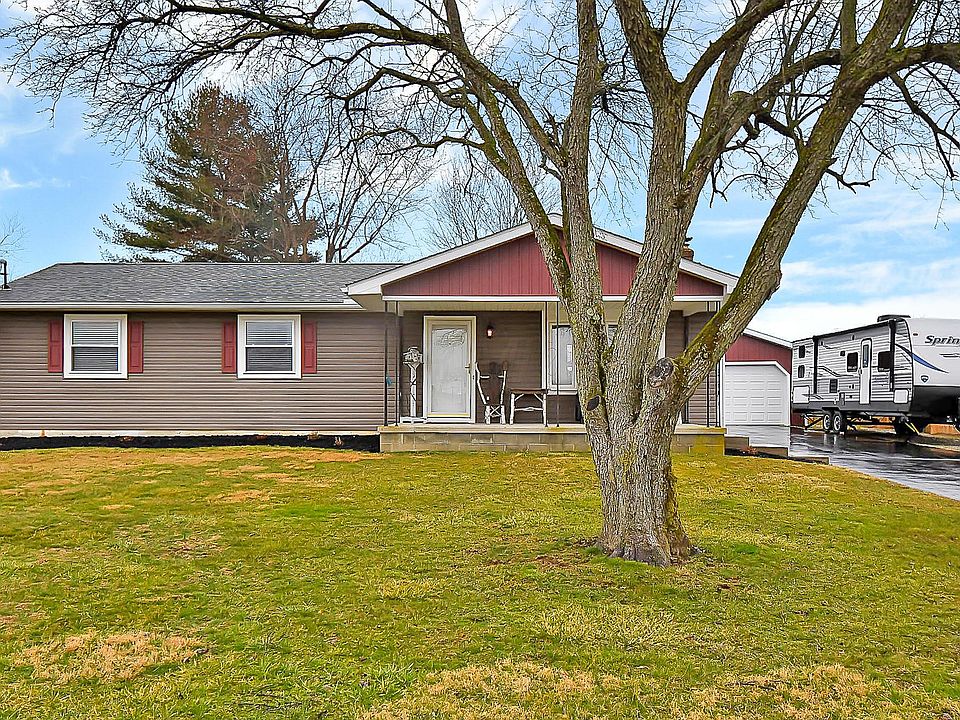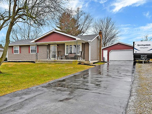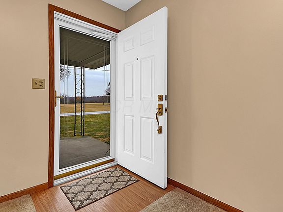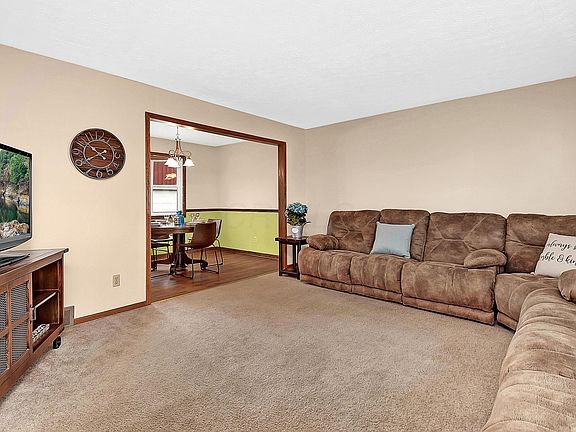 Easy living is yours in this well maintained 3 BR ranch nestled on almost 1 acre mature treed yard ( 2 parcels). Updates include new lighting, paint & carpet , 28 x 10 patio, remodeled bath inc new vanity, new roof 2018, siding & gutters 2018, new commercial sump 2018, Hot water tank 2018. Majority replacement of windows 2018 and all doors inc the garage and more! 24 x 30 pole barn with cement floor and 24 x 24 over sized garage with 220 and cement floor. Convenient to the new Watkins middle & high schools & freeway close convenience. Abundance of cabinets and corian counters in the eat in kitchen. Holiday size dining room. Partially finished lower level. Radon Mit installed .Beautiful views stretching to the horizon & magnificent sun sets. See how good life can be. See this home today