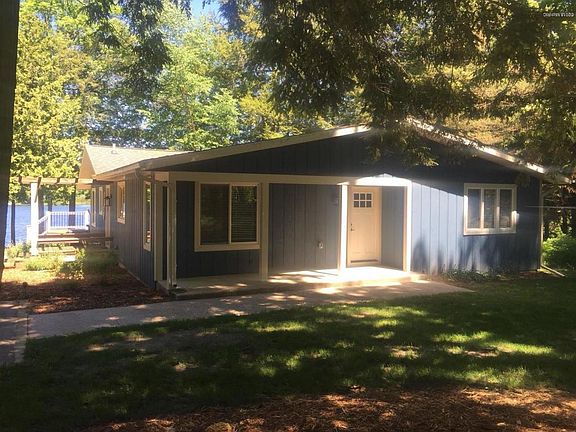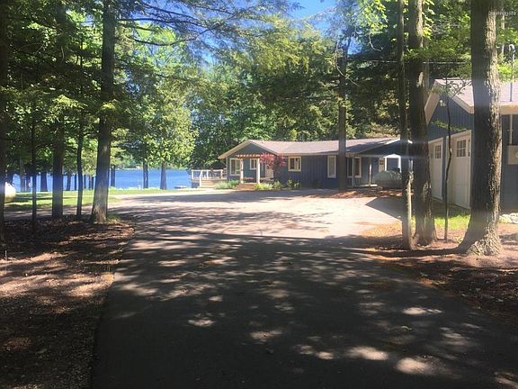 Outstanding 3 bedroom 2 bath walkout ranch with 212 feet of private BIG BASS LAKE frontage! 290 acre all sports lake just a few stepping stones away. 1.64 acres surrounds you as you enter this FULLY FURNISHED year around oasis or summer home get-a way! ALL new since 2014: Roof,furnace,central air(all new duct work),hot water heater, all new electrical,well, Ayers entire dry basement system, wrap around deck and railing, plumbing THE WORKS! 2 stall garage with an additional 32x40 new(2016) pole barn addition with 3 overhead doors(12x12)and 14 foot ceilings! Fully insulated w/floor drains and room for all the toys and more!The cottage has been completely redone including top of the line EVERYTHING from wood and slate flooring,granite countertops,stainless appliances to furnishings galore.