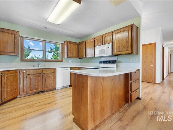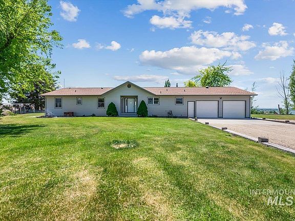 This home sits above Foothill Rd with some of the best views of the Owhyee Mountains. This one owner property has been very well maintained. Oak cabinetry with solid surface countertops. Jetted master tub. Private well and septic. The home sits on a 4 acre parcel with a 24'x48' shop with 14' lean-to's on both sides. The shop has 220 power, 2 gas furnaces, a sink, and an oil pit. Plenty of shelving and work benches. The southern 1.5 acres have been approved for a land split division and have a building permit available. Ideal lot for a walk-out basement. Plenty of room for animals.