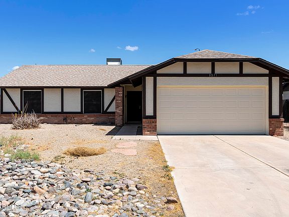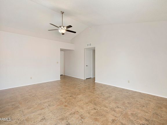 Single-Level Home in prime Peoria location. This block-constructed home sits on a spacious 8,768 sq. ft. lot with block fencing. Featuring 3 bdrms & 2 baths, the great room design boasts a vaulted ceiling in the living area for an open, airy feel. Fresh updates throughout, including new two-tone interior paint in & out, brand-new stainless steel kitchen appliances, new 2'' blinds. The home features sleek 20'' tile flooring throughout the main living areas, with new plush carpet in the bdrms for added comfort. Step outside to a full-length covered patio overlooking the spacious backyard. Located in a prime Peoria location, this home offers easy access to the Loop 101 freeway, Luke Air Force Base, Arrowhead Mall, and Westgate Entertainment District