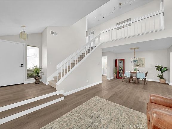 Stunning End Unit Townhome in the Highly Desired Shadow Lane Community, Quality-Built by Fieldstone Homes is Located Less than 4 Miles to the Beach, and is in the Top-Ranked School Zone (Courreges, Fulton, FVHS). This Light, Bright, Open Flowing 3 Bedroom, 2.5 Bath Home with 1,639 Square Feet, an Oversized 2 Car Garage, and Central A/C has been Beautifully Upgraded Throughout. Walk Down the Private Walkway to the Entry Door, Step Inside, and be Prepared to be Amazed! A Grand Foyer Greets you as well as an Elegant Formal Living Room & Formal Dining Room with Soaring Cathedral Ceilings, Brand New Waterproof Wood Vinyl Flooring, New Paint, High Baseboards, and Custom Door Casements. An Arched Passage Leads to the Completely Remodeled Chef-Inspired Kitchen with Center Island, Quartz Countertops, Custom White Shaker Soft Closing Cabinetry, Deep Drawers, Pantry with Pull-Outs, Stainless Appliances, and Farm Sink. This Gorgeous Kitchen is Open to an Inviting Family Room that Includes a Granite Fireplace with Hand-Crafted White Wood Surround and Mantel, Plus Wall of Sliders that Lead to the Tranquil Private Patio that's Perfect for Entertaining Guests with Backyard Barbeques and Ocean Breezes. This Fabulous Home also Includes New Designer Carpet Upstairs, Upgraded Downstairs Bathroom with Quartz Countertop and New Fixtures, Ceiling Fans, and Top-of-the-Line Window Treatments - Tri-Light, Automated Banded Sheer and Honeycomb Shades with Smart-Home and Blackout to Sheer Features. Upstairs is an Impressive Landing Area with "Cat Walkway" and Multiple Transom Windows for Lots of Natural Light Throughout Home. The Master Suite is Extra Large with Cathedral Ceiling, Retreat Area, His & Hers Mirrored Closets, and Bathroom with Dual Sinks. This Lovely Community Boasts an Association Pool and Spa with Mountain Views.