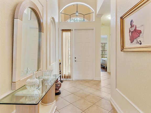 Elegance awaits in this 4 bedroom, 3 bath home. The 2,495 sq. ft. open floorplan was designed for entertaining with a great room and a formal dining room. The gourmet kitchen features granite countertops, full granite backsplash, a snack bar and a family dining area. The luxurious master suite has a coffered ceiling, his and hers closets, a garden tub and walk-in shower. Tile laid on the diagonal, hardwood flooring, crown molding and high hat lighting are just a few of the finishes that make this home special. Enjoy our tropical climate on the spectacular extended brick patio in your private backyard. Canyon Lakes features first class amenities that include a clubhouse, fitness center, and a resort style pool. Located close to shopping, dining, ''A'' rated schools and major highways.