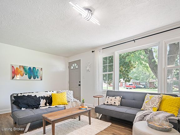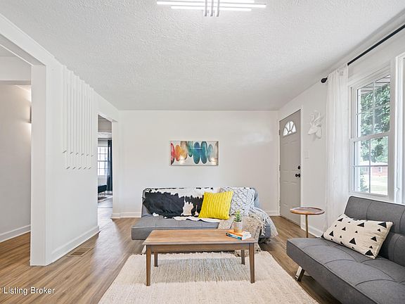 Another masterpiece designed by Tara Graves of Bluegrass Build & Design who was recently featured as Louisville's Home of the week. The design in this Bedford stone ranch is modern and simply stunning. Everything has been touched in this home from the exterior paint to the interior electric fireplace with over 30 color combinations and different flame speeds as well as 5 dimming options. The floor plan has been opened up and now you have a brand new kitchen with island. The bathroom was fully renovated with new tile, vanity, fixtures and bluetooth speaker exhaust fan. The home has luxury vinyl plank in bedrooms and living areas. Roof is 3 years old, HVAC is 1 year old, electric panel and water heater is 3 years old. There is a large deck off the back family room that leads to the fenced in backyard perfect for those pet lovers! You will be AMAZED by this home as it is a top notch renovation. See attached documents for a list of updates from the designer! Stop by the open house on Saturday, July 30th from 12-2pm. See for yourself how amazing it is!