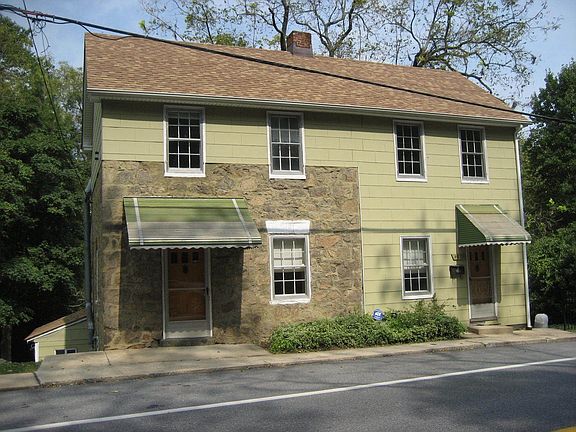 Built in 1809, originally as The Icehouse of Ellicott City, this duplex is now a single family home. Walking distance to downtown Ellicott City and set on a beautiful half acre lot backing to woods and The Hudson Branch, a tributary to the Patapsco River less than one mile downhill. Historic Ellicott City is well known for chronic disasters from runoff in the 3sq mi watershed in 2011, 2016 and 2018. In the 2018 flash flood this home was successfully floodproofed and did not receive flood water inside the home. The 1/2 acre is floodplain designed to manage and slow runoff. The home is "wet-proofed" and humidity is regulated by Hemp-Lime insulation. The Howard County DPZ Historic Preservation Commission approved a Tesla SolarRoof and Powerwall back up battery for this resilient historic home, setting a first time precedent for solar energy in the Historic District.