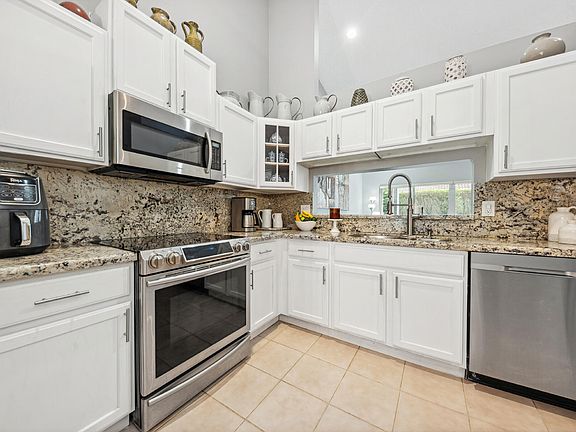 Beautifully updated and immaculate 2/2 villa with 1 car garage. Spacious unit with vaulted ceilings , walk in closet, tub and shower in primary bedroom, impact windows, plantation shutters, new tankless water heater, new garage opener, stainless steel state of the art appliances and updated kitchen. All A rated school zones in a gated community with lots of amenities. Pool, exercise room, clubhouse, playground, tennis courts and billiards all while still having a low HOA. Pet friendly! Large dogs allowed( breed restrictions). Furniture negotiable. Seller will pay assessment at closing. HOA includes roof, which is brand new! Partial lake view with screened in patio. Homes in this community don't last! Very desirable community near Turnpike, Town Center Mall, tons of retail and restaurants
