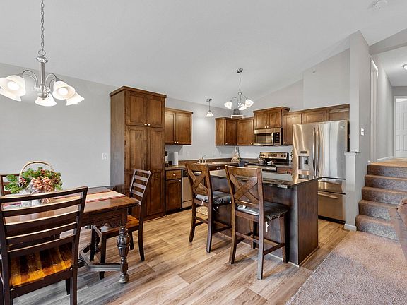 Embrace the charm of this exceptional end unit townhome overlooking serene green space. Step inside to discover an inviting open floor plan highlighted by a spacious kitchen featuring a center island, perfect for gatherings. With three bedrooms conveniently situated on one level, including a luxurious primary suite boasting its private bathroom, comfort and convenience are at the forefront. The living room boasts airy vaulted ceilings, adding a touch of elegance. Downstairs, the finished basement offers a versatile family room, ideal for relaxation or entertainment. Experience the epitome of townhome living with this delightful property.