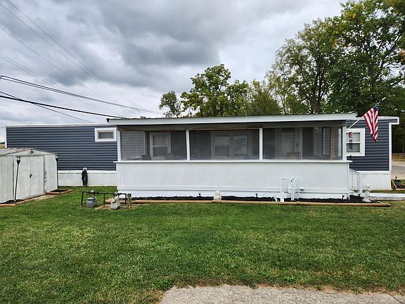 If you're looking for a fun spot to kick back, here it is! You will love this 2 bedroom, 1 bath, mobile home situated in Whispering Valley Mobile Home Park. The inside features a nice, bright, airy open concept living and kitchen area! Beautifully furnished throughout, and move in ready makes this an ideal, ready-to-use vacation spot, or full-time residence. The kitchen is full of cabinets, with plenty of space to work. Kitchen appliances and NEW washer & dryer are included. Lot size requires minimal mowing and maintenance. Monthly lot rent of $411.00 covers water, sewer, trash, and snow removal. Being just steps away from the Lake, Spillway, and Great Miami River will put you in a spot where some of the best fishing takes place. Please note: this is NOT a seasonal park, but all year round living. The following items were purchased/installed in 2023: New Roof Coating - Elastomeric, beautiful new siding (Beautifully installed by M&T Remodeling and Home Improvement), new interior and exterior paint, new Washer and Dryer.