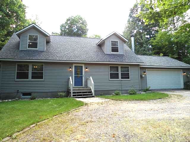 Lovely 2 bedroom vinyl sided home located on 1 acre of wooded bliss that abuts to acres of state land. Watch the deer walk through your back yard while relaxing on your back deck. The main floor features a spacious master suite along with an ample sized living room with gorgeous stone fireplace along with hard maple floors. There is a nicely finished chef's kitchen, a dining area, main floor laundry, guest bath, and cute office space that finish off this level. The upper level features a huge guest room and family room perfect for watching the game. The lower level is spacious and ready for your finishing touches. There is a large 2 car garage as well. The home is ready for you to move in! See it today.