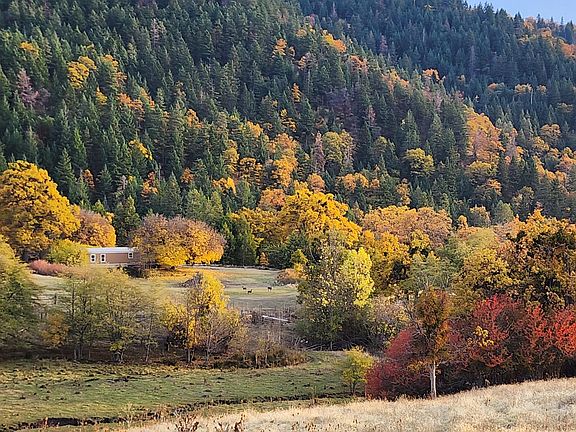 Once the homestead of the 1,100 acre Anderson Ranch, this expansive 7 acre parcel offers usable, level terrain, year-round spring-fed Babe Creek with pioneer water rights, original heirloom apple and plum trees, old growth black walnut and black oak, alder, cedar, fir, and willow trees, wildflowers and abundant wildlife. There is a liveable 1993 924 sq ft 2 bed/2 bath manufactured home preserving the home site and outbuildings. The roof, siding, skirting and flooring have all been replaced within the last two years. Antique cedar split-rail fence surrounds the home. Water is sourced from both a high-producing well and deeded water rights.The land is a homesteader's dream and this would be an excellent place to build your dream home.