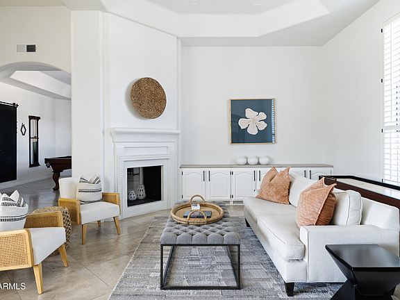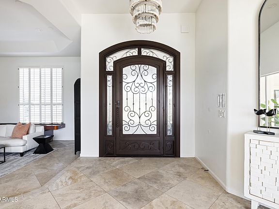 Experience luxury desert living in this stunning Cactus Corridor estate, ideally situated on a premium corner lot with mountain views and a large circular drive. This spacious home features a split open floor plan with 5 bedrooms, 4.5 bathrooms, and an additional bonus room—perfect for flexible living. Vaulted ceilings and expansive windows welcome you with abundant natural light and picturesque views of the resort-style backyard. The large designer kitchen opens seamlessly to the family room, creating an inviting space ideal for gatherings and everyday living. Step outside to your private retreat, complete with a sport court, putting green, sparkling heated pool, and hot tub—designed for relaxation and entertainment. No HOA