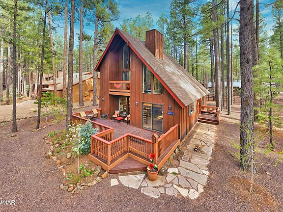 Pinetop Country Club cabin in the woods ! This cute cabin features 2 bedrooms and a full bath downstairs plus 2 bedrooms and a full bath upstairs, vaulted ceiling and Rock fireplace in the great room. Lots of windows for natural light. Large Deck. Walk to the national