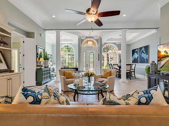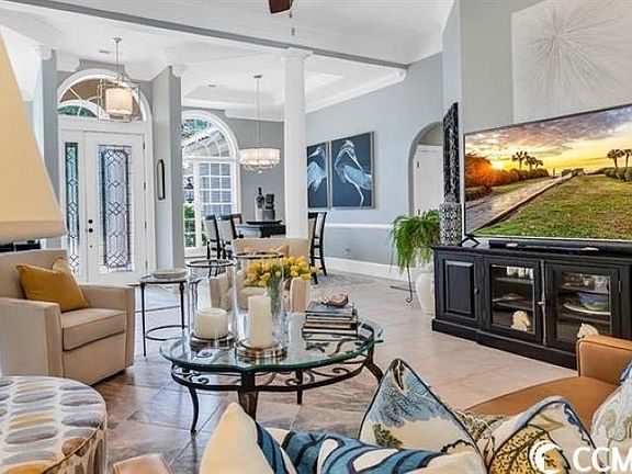 MOVE IN READY! Located on the Resorts Golf Course in the Capri Village section of Grand Dunes, this immaculate 3BR, 2BA ICF-constructed home is COMPLETELY RENOVATED, well maintained, and situated on a deep lot that offers both privacy and views of the 3rd green and 4th fairway. It’s all of the features one would expect in a home of this caliber. Designer improvements galore: lighting fixtures, ceiling fans, flooring surfaces, major renovations to all bathrooms, the addition of a spectacular heated saltwater pool area with enclosure, state-of-the-art outdoor infrared heating systems, park-like landscaping, and pool lighting. These skillful and tasteful updates have resulted in a bright and airy palate that is pleasing to the eye. Inside, you'll find a comfortable floor plan with a formal dining room, a family room with a fireplace, and a study/den. The kitchen boasts custom cabinets, granite countertops, stainless steel appliances, and a separate dining area. The north wing of this split bedroom plan houses a huge owner's suite complete with a sitting area, a separate patio entrance, and a master bath that features dual vanities, a soaking tub, and a large walk-in shower. On the opposite side of the home, you'll find the 2nd and 3rd bedrooms separated by a bathroom with a large vanity and walk-in shower. Along the rear of the home, you can pass through the double sliding doors to the lanai which provides access to the pool and large covered enclosure. Whether you choose to cozy up under the warmth from the overhead speakers/infrared heaters, listen to music, or enjoy watching the stars protected by the enclosure... this space offers a relaxing spot for everyone. All systems including HVAC, Pool, and Pest Control are under annual maintenance contracts with the pool being serviced weekly.