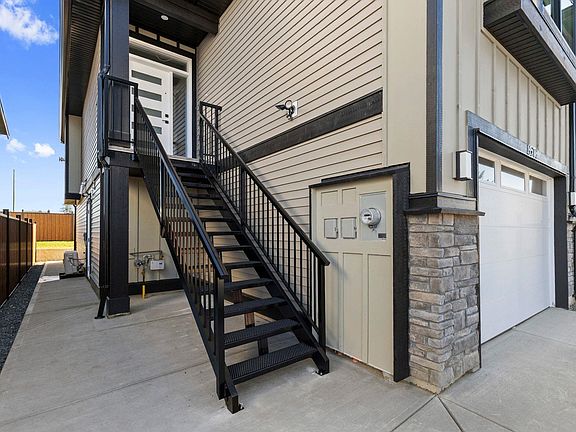 3 level 1/2 duplex with 1 bedroom suite and double garage! This unique floorplan offers modern kitchen with flat panel cabinetry and quartz countertops, great room with gas fireplace and Primary bedroom on the main floor. Top floor for children with 2 bedrooms, full bathroom and laundry! Lower level is ground level with 1 bedroom suite with separate entrance and own laundry (no stairs for your parents and no window wells, bright, all above ground) Long life metal roof, double garage, huge driveway, heat pump/ac, all at an unbeatable price with no strata fees or rules! Better than a townhome, call today to view!