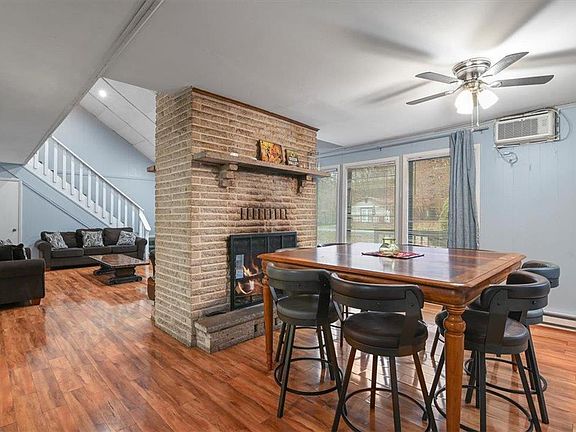 This 4-bed, 2 bath contemporary in short-term rental friendly A Pocono Country Place is minutes' walk from the community's H pool. It sits on a flat lot, surrounded by wooded vacant parcels on all but one side. The house features a double-sided wood-burning fireplace in brick in the living room. Sliding glass doors in the living room lead to a deck. On the first floor, there is a full bathroom and two bedrooms, which each have a closet. The 2nd floor has two bedrooms each with sliding glass doors that lead to a deck, where there is a hot tub. On that floor, there is a second full bathroom. The home, whose taxes are only $1,627.71/year, is near area shopping, as well as attractions including Mount Airy Casino and Kalahari waterpark. A Pocono Country Place is filled with amenities, including swimming pools, lakes and tennis courts.