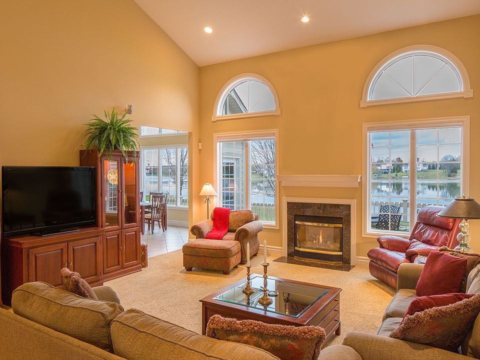 This elegantly designed custom built lakefront home is a true compliment to Loch Erin's private lake community. Boasting over 5,000 sq. ft. this three level residence w/ walk-out lower level prides itself with quality construction, materials & finishes. The moment you walk in the front door your eye is captivated by the ambiance of the soaring ceilings, gorgeous oak banister & open concept of the Great Room. Well designed kitchen offers workspace functionality, ample storage, cherry cabinets, Bordeaux granite countertops & island. Designed w/ entertaining in mind the kitchen integrates a spacious eat-in area w/ outstanding views of the lake from the stunning curtain wall of Anderson windows. Exceptional 1st flr master suite w/ extensive moldings, tiered ceiling, lake views, walk-in closet & luxurious bath. Walk-out brimming w/natural light, crown molding, tall ceilings, wet bar w/granite, guest suite & massive family room. Heated garage. Whole House Generator. Radiant Heating.