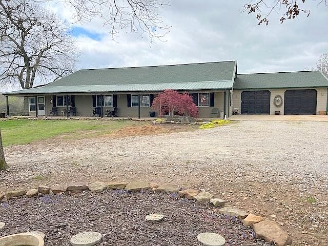 This beautiful property is located near the Buffalo National River and Bull Shoals Lake. An easy drive into Harrison, Arkansas and only 1 1/2 miles to schools! This spacious 3 bedroom 2 bath home is in excellent condition and sits on top of a tree-shaded hill overlooking the fenced and cross fenced 25 acres! Open floor plan with vaulted ceilings. Big living area and extra large kitchen and dining area. Kitchen has all new stainless steel appliances, beautiful knotty hickory cabinets, pull out shelves and an island. Split bedrooms. The master bedroom has a walk-in closet with built-ins. Double vanities in both bathrooms. Private, roomy office/sunroom. Oversized 2 car garage plus storage or workshop area. Roof is only 8 years old. 2 covered porches running the length of the home.