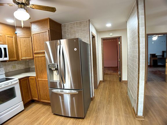 Located within walking distance of downtown is this nicely updated 796 sq foot home. Buyers will appreciate the newly remodeled kitchen with appliances to remain. Newer windows throughout were installed approximately 5 years ago. Features include a spacious living room, bathroom with a walk-in shower, designated laundry room, generous sized bedroom, and a bonus area that could be an office that leads to the enclosed back deck. The home has a privacy fenced yard and single car garage with a work space. Other perks include a partial basement which provides storage/workspace and central ac/heat.