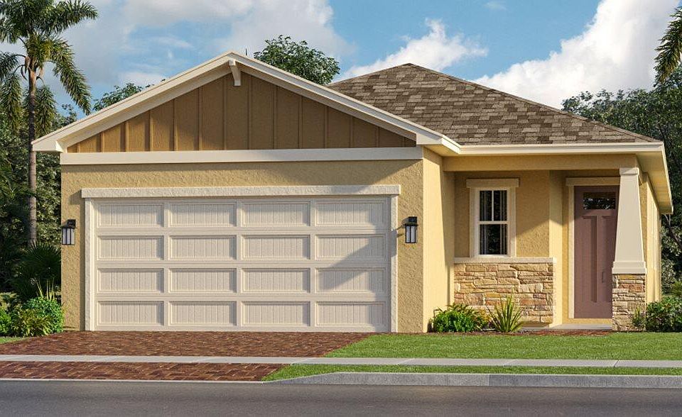 Welcome to Timbers at Everlands ~ Palms Bay's Newest 55+ Community. This new single-story home is a modern take on a classic design. An open-plan layout connects a well-equipped kitchen, intimate dining room and Great Room together to prioritize ease of living, while a SECULDED DEN/OFFICE. A secondary bedroom for guests and a private owner's suite with a large attached bathroom and a large walk-in closet. This home features tile through out (no carpet anywhere!!!), cabinets in the laundry room, Crown Molding in main living areas and owners suite and blinds on all the windows!!! A large back covered patio will be welcoming on warm Florida evenings! Not to mention the peace of mind that IMPACT WINDOWS give you!!! Be sure to ask a sales associate about our builder incentives and schedule your visit today!