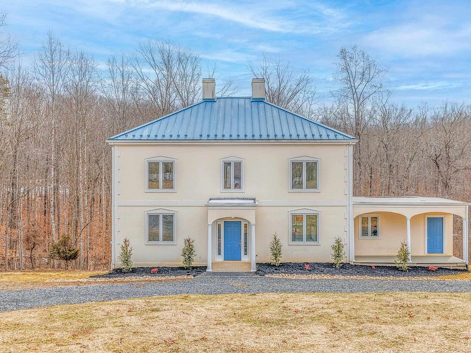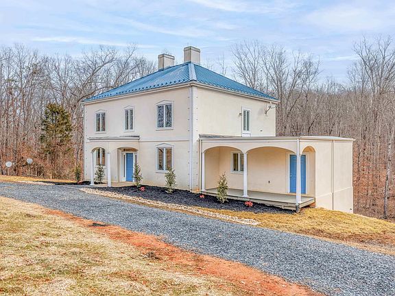 Gorgeous 5 Bedroom Property on a Secluded 4.5 Acre Lot - Step into this stunning, move-in ready home w/modern updates & neoclassical charm. Boasting 5 spacious beds, including 2 en-suites & 4 fully remodeled baths. Brand new flooring thru-out, refinished hardwood floors, spacious 9' ceilings. Chefs dream kitchen w/new quartz counters, ss apps, new lvp floors, abundance of cabinetry w/glass fronts, dedicated veggie sink & inviting eat-in dining area offering views of your wooded backyard setting. Organization is a breeze w/a large walk-in pantry & laundry room, boasting extensive shelving. The main level offers full bath, home office (or could be converted to an additional bedroom), a large great room adjoining the kitchen area & formal dining and living rooms. 2nd story features a master bedroom suite, alongside 2 additional large beds & fully remodeled baths. A walk-up attic w/flooring offers storage or a creative space. The walk-out terrace level features a second master bedroom w/en-suite, a large family room & additional storage. A wrap-around driveway, metal roof, multiple archways & covered porch. Hot water heater new in 2019, geothermal heat, poured foundation, steel & concrete construction. Convenient to Richmond/Cville.