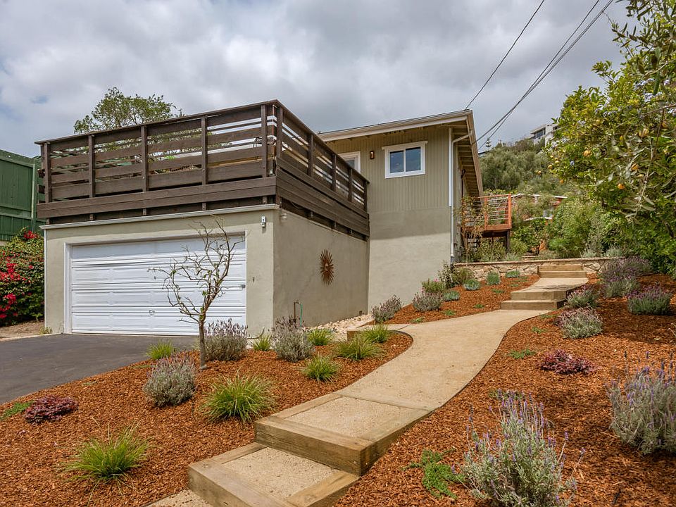 Amazing views and privacy! Single level home with dining room and family room. New wood floors and shutters throughout. Newer kitchen features with marble backsplash and white cabinets . Recently remodeled baths with tile floors. Air conditioning recently installed. Beautiful landscape with lots of citrus trees. Large deck with ocean view. Two car attached garage and off street parking.