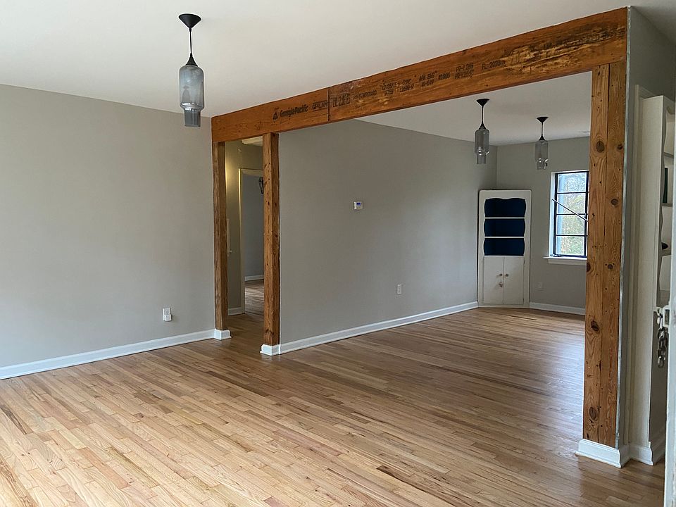 Renovated and a new-ish roof. Open floor plan for living areas but private bedrooms. Beautiful natural light. Built in shelves. Basement workroom and storage and outbuilding Studio (no water or electricity). Electric heat and central ac. Original wood floors.