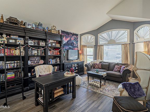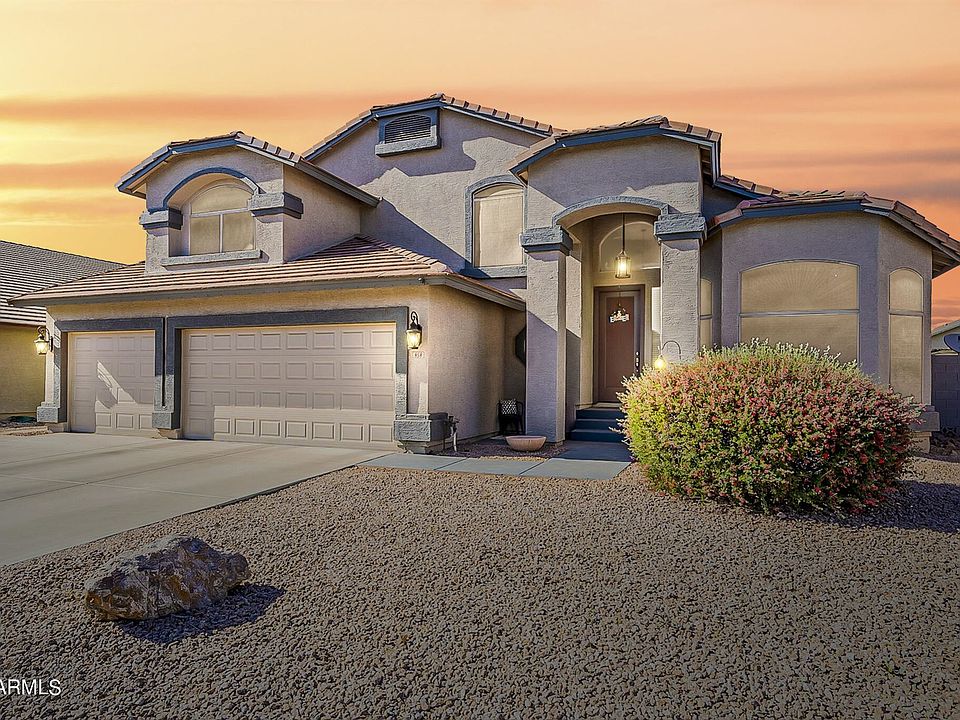 Stunning 5 Bed 3 Full Bath Gilbert Home w/ 3,082 sqft of living space on a HUGE lot. Close to Downtown Gilbert, San Tan Village shopping, & the 202 freeway. Unique open floor plan with step-downs into living room/library area & HUGE family room. One bed & bath on main floor makes for a fabulous guest quarters for friends/family/home gym or an office space away from the rest of the house. Tons of storage, including a Harry Potter closet under the stairs & 3 car garage. Wood-look porcelain tile flooring throughout the entire downstairs & hardwood flooring on the gorgeous ombre staircase & throughout the entire upper level! Granite countertops & subway tile backsplash in large kitchen featuring an eat-in island & a fun swinging kitchen door that leads to a formal dining area. Come today!