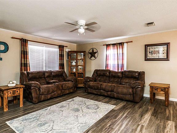 A must see! This home features 4 bedrooms/3 bathrooms, 2 master suites, lots of updates: vinyl plank flooring and new carpet, remodeled kitchen with a butcher block island, large laundry room with a huge pantry for a large family, fresh paint outside, flagstone covered patio, metal shop and a storage building, all sitting on almost 2 acres. Call or text today for your private showing!