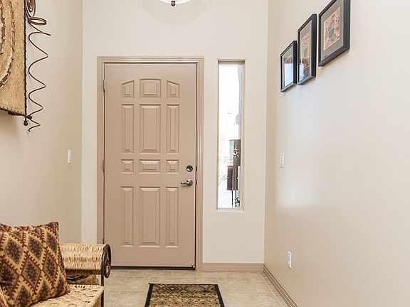 The first thing you will notice about this charming home is the lush, well maintained landscaping. This 1,497sf home with 3 bedrooms and two full baths is the perfect size for your desert oasis. The kitchen and laundry room boast tall upgraded knotty alder cabinets. Two tone paint throughout, as well as upgraded canned lighting and a garden tub create elegance. Exit your master bedroom through a sliding glass door to your fully extended patio. Blossoming flowers, partial mountain views and fully shading pergola awning is a great area to spend your time. This house is already wired and supplies plenty of room for a hot tub or spa. The two car garage features a sink, man door, shelves and a work bench. Falcon Glenn has a desirably low HOA fee for North of I-15.