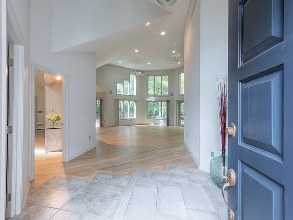Custom executive home in desirable Katherines Wood on the best wooded lot in the neighborhood! Open floor plan! Stunning entry has a 19' ceiling. The gorgeous great room has a 15' ceiling, wall of windows & floor-to-ceiling stone fireplace. Custom Jae Company cabinets in kitchen & great rm, vaulted 19' kitchen ceiling w/ sky windows. Lovely separate owners' wing has vaulted ceiling, fireplace, private deck. ensuite bath w/ spa tub & a steam shower, huge walk-in closet, FF office w/ separate entry perfect for wfh. Brick wine cellar w/ Fortin Iron Works gate, plus add. sqft in LL. New furnace 2016, 2 - HWT's 2014. Freshly painted. Refinished hardwood floors. Fridge and dishwasher new 2021. Screened porch. Private decks w/ woodland views. W/D convey. Quick 30 min commute to Intel. Location!