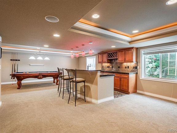 Welcome to this opulent home in the desired community of Maher Ranch. As you enter you will be greeted by a beautiful staircase with iron balusters and high ceilings. The main level features the extensive eat-in kitchen with an abundance of cherry cabinets, large pantry, SS appliances, slab granite counters and tile flooring. Just outside the sliding glass door is a covered patio with a breathtaking water feature and yard with gardens that bloom year-round. Open to the kitchen is a fabulous family room with a wall of windows, 2-sided fireplace, and the right amount of space for decor and entertainment. On the other side of the fireplace is the private executive office. You will also find the formal living room and dining room with vaulted and tray ceilings, and a large laundry/mud room with utility sink on this level. Moving to the upper level, is the sophisticated primary suite with a gas fireplace and fabulous walk-in closet. The 5pc ensuite bathroom is perfect for relaxing in the soaking tub or preparing for the day. The upstairs is completed with 3 additional bedrooms, 2 with a conjoined full bathroom and 1 with a full ensuite bath. Moving to the lowest level of the home brings you to an entertainer’s space. Centered is the full-size wet bar with beer taps, wine fridge, bar bridge, microwave, and sink. All next to the spacious billiards area. There is also a guest suite and bathroom on this level along with plenty of storage. Lastly, there is an oversized 3 car garage with storage and a .28-acre corner lot that feeds into a quiet cul-de-sac.