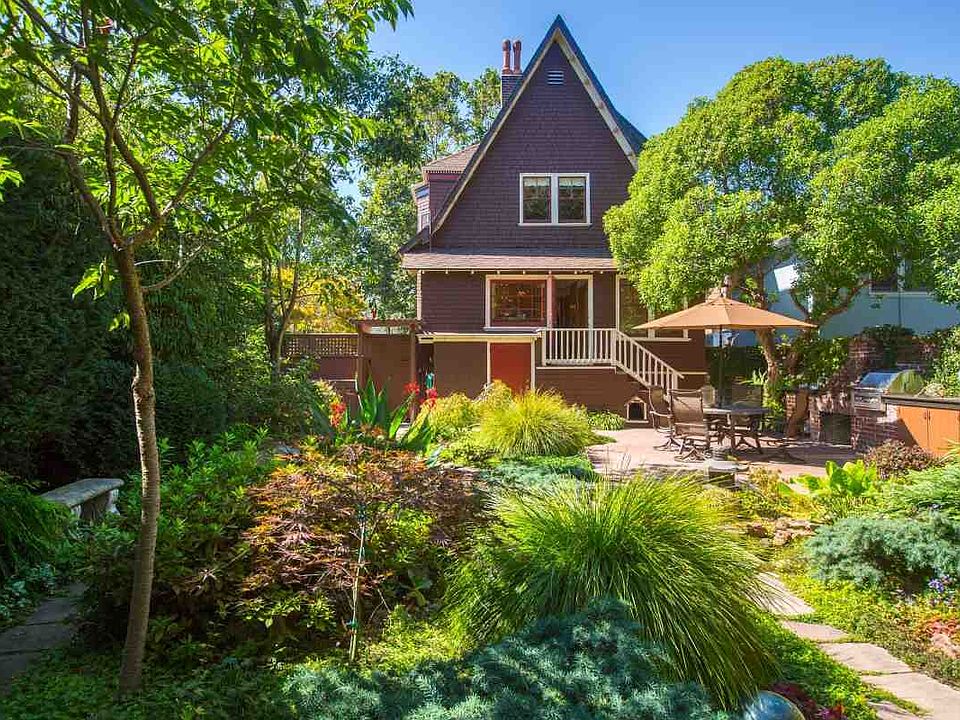 Striking a timeless balance between past & present, this high-peaked Colonial Revival home radiates the warmth & charm of an intimate family home while providing a showcase for both indoor & outdoor hospitality. Built in 1902, on a tree-lined street, this exceptional home has been cherished & lovingly preserved by its owners. Sunny, spacious rooms include formal LR & DR, updated eat-in kitchen w/garden views, 3BR, 2 updated bathrooms, 978 SF finished basement w/workshop, full laundry room, bonus room & ample storage room. Period details include 9-ft coved ceilings, bay windows, inlaid oak floors, Tiffany-style lamps & a carved oak fireplace surround. Perhaps the most extraordinary feature is the enchanting landscaped garden w/a koi pond & Japanese-inspired/custom-built private outdoor shower/hot tub, featured in local & national publications. Located on one of THE BEST blocks in Alameda: a non-thoroughfare tree-lined street near downtown, the beach, shopping & public transportation!