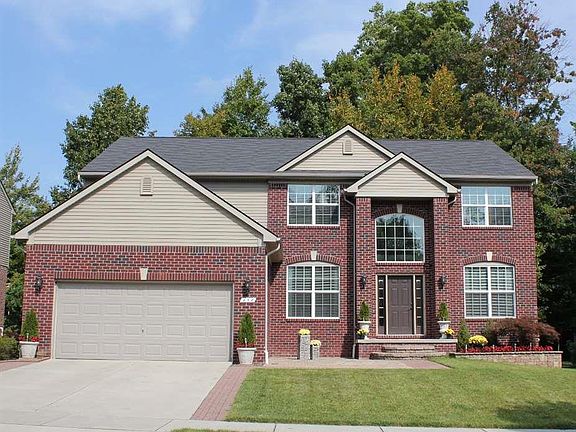 Elegant Rochester Hills 4 bedroom, 3 bath colonial. Bedroom on the first floor can be used as exercise room, Den, or a play room for the kids. Extensive Masonry walkways leading to multiple areas ranging from the front of home to the elevated patio overlooking the woods and relaxing fire pit surrounded by the tall trees. Inside this masterpiece offers rich cherry hardwoods.