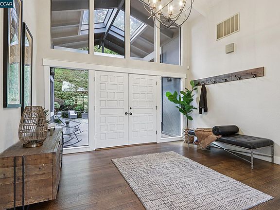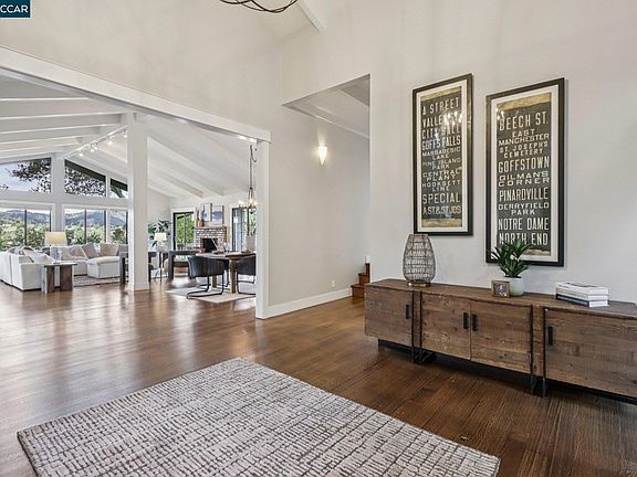 Gorgeous hillside home with flexible floorplan for the whole family! Enjoy sweeping views of downtown Lafayette and the surrounding hills from this private, beautifully appointed home. The flexible layout connects the living, dining, and kitchen areas, creating an easy flow for both entertaining and everyday living. The kitchen offers premium appliances, custom cabinetry, and a casual breakfast bar. The main level features a serene primary suite, an office, three additional bedrooms, and two-and-a-half baths. Downstairs includes a spacious fifth bedroom, full bath, laundry room, and a large bonus room with separate exterior access—ideal for guests, an au pair, or a home office. Two driveways and an oversized three-car garage offer abundant parking. Set on two acres dotted with heritage oaks, the outdoor spaces shine with a generous patio, firepit, and outdoor kitchen. Perfect for quiet evenings or lively gatherings under the stars. All just minutes from BART, Hwy 24, Lafayette Reservoir, downtown shopping and dining, and top-rated Lafayette/Acalanes schools. You will not find anything like this very special home, visit today!