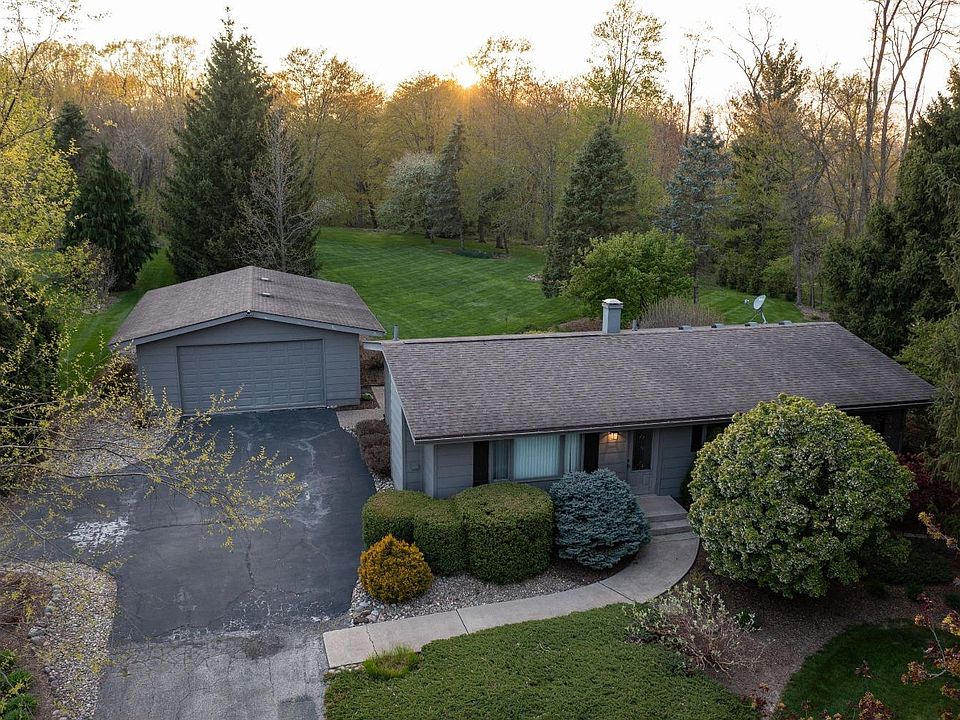 One of the most beautiful pieces of property with a rolling hill and professionally landscaped!! Capture this escape for yourself! 1.6 ACRES! All the amenities are nearby yet a slice of peace and tranquility! The Beautifully improved Ranch home has been nicely maintained with open concept living area, vaulted ceiling in the main living space and a gas fireplace to cozy up to in the cold winter! Spacious kitchen with Newer appliances and New Washer and Dryer! 3 nice sized bedrooms, 1 full bath and 1/2 bath off the master bedroom with space to add a shower!! The large beautiful deck (BUILT IN 2020) leads you to the oversized HEATED Finished garage (approximately 23x32). Estate Sale.