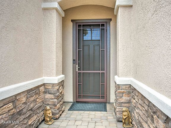 This beautiful home backs to the golf course & has gorgeous mountain views as well! It was constructed with extensive builder options & upgrades, including a 24' deep garage!, plus many outdoor features that provide for year round enjoyment of the golf course location & views such as remote controlled misting system, built-in heater and roll shades. The open concept floor plan with 10' ceilings throughout, is perfect for hosting gatherings. The living room features a stacked stone fireplace as the focal point & triple wide glass doors leading out to the back patio. The gorgeous kitchen is light & bright, with quartz counter tops, custom tile backsplash, upgraded cabinetry, upgraded built-in stainless steel appliances, Rohl Fireclay sink, a walk-in pantry, and an island with bar seating.