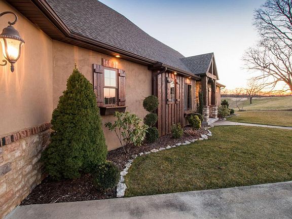 Beautiful, Stylish & Immaculately cared for home in quiet & private Hickory Ridge Estates. This is an incredible opportunity to own in this gated community in Branson Schools (bus pickup at driveway). Boasting 3 Large Bedrooms, 2 Baths & 2200sqft living all on one level, it is perfectly perched on 5 Acres with an endless magnificent view. Gorgeous wide plank hardwoods, slate tile in both baths & laundry, mechanical hidden in cabinetry, stylish paint & fixtures, oversized kitchen island, extra-large pantry, attractive granite countertops, and so many more features throughout. Currently used as an office- this bonus space could also be a formal dining or play area. The real beauty is found from the covered back deck to the 5acres & beyond. This opportunity will not last, this is a must see!