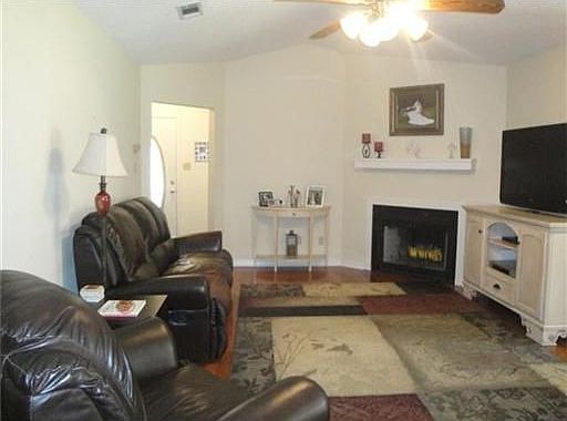 Well maintained home framed by a canopy of beautiful trees! Cul-de-sac location. Foyer. Vaulted ceiling & fireplace in GR. Hardwood flooring in foyer, GR & halls. Open kitchen/dining. All appliances remain, including washer/dryer. Split floorplan. Huge walk-in closet in MBR. Covered back patio.
