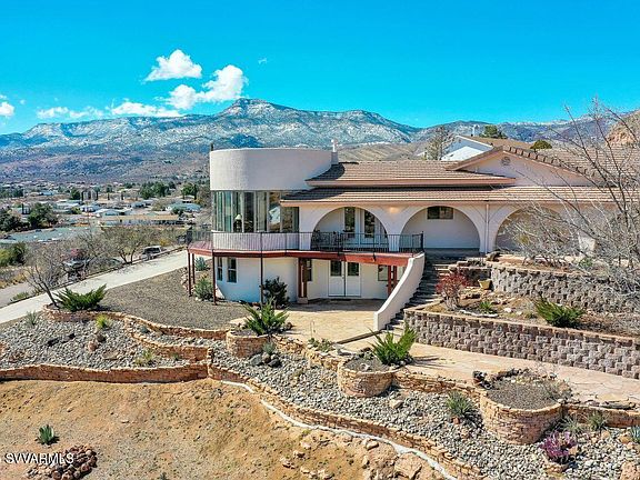 Breathtaking Hilltop Views in Clarkdale's Palisades Subdivision! This well-maintained, original-owner home offers over 180-degree panoramic views, including the stunning Sedona red rocks and Sycamore Canyon. The main level features 1,840 sq. ft. of comfortable living space, including 3 bedrooms, 2 baths, a cozy living room with a dual-view fireplace shared with the dining area, and a full-length rear deck perfect for enjoying the scenery. The lower level adds 700+ sq. ft., offering a versatile space—ideal for a possible in-law suite—with a private patio and half bath. Nestled on a sprawling 1-acre lot with beautiful mature trees and landscaping, this property is a rare find. Recent upgrades include a new roof (underlayment) and fresh exterior paint! Don't miss this incredible opportunity!