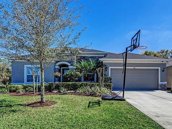 Coastal living at it's finest in this 5 bedroom, 3.5 bathroom, plus den and formal living area home in the sought after Greyhawk Landing Neighborhood. This home offers great curb appeal and sits on a corner lot with beautiful landscaping, a preserve behind it, a large pond view in front of the home, and plenty of space with the side yard expanding to a large grass common area. Once inside you'll see the amazing features including eye catching wood tile throughout the entire home, crown molding, tray ceilings, plantation shutters, and custom made curtains. Entertain guests in the open floor plan featuring a gourmet kitchen with an expansive Cambria island that opens to the large Living Room. In-Ceiling Speakers throughout the home and lanai allow you to enjoy relaxing music or expand your TV's Surround Sound. The Owners' Retreat offers the convenience of private lanai access, dual sinks, Jacuzzi tub, and frame-less glass shower. Feel secure with HD Security Camera's in the front and rear of home along with wireless alarm. Lots of storage available with a 3 car tandem garage including ceiling storage racks. A tankless gas water heater will ensure you always have plenty of hot water. The community features guards, 2 community centers with lagoon-style pools, spas, and waterslide, 2 parks, state of the art fitness center, basketball and tennis courts, baseball and soccer fields, and miles of trails. Minutes from shopping, schools, recreation, and medical facilities. Convenient access to top beaches and I-75. Owner pays exterior landscaping and maintenance including pest control
