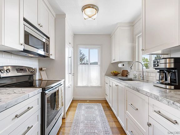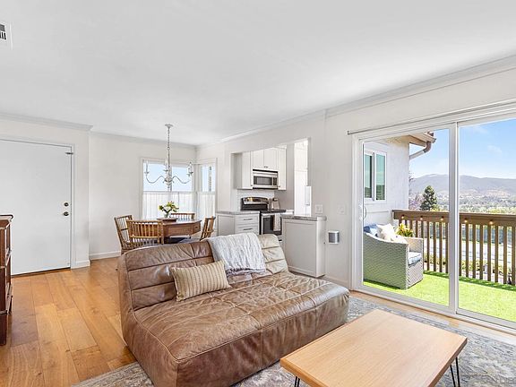 Beautifully upgraded home in the highly desirable Sommerset By The Lake community, perfectly perched at the top of the hill to capture stunning panoramic views of the mountains, hills, golf course, and greenbelt. This light-filled, upstairs unit offers incredible natural light throughout and has been completely remodeled with thoughtful touches including upgraded light fixtures, crown molding, custom cabinetry, and granite countertops in the kitchen. The modern, open kitchen also features a high-end Fisher & Paykel refrigerator. Enjoy the view from your private deck off the living room and from both spacious bedrooms. The primary suite features a walk-in closet, en-suite bath, and the unit includes a private full-size laundry closet (with an additional shared laundry area in the community). Detached 1-car garage for convenience. Resort-style community amenities include a clubhouse, gym, pool, spa, and tennis courts. Prime location directly across from Lake San Marcos and close to shopping, dining, and recreation.