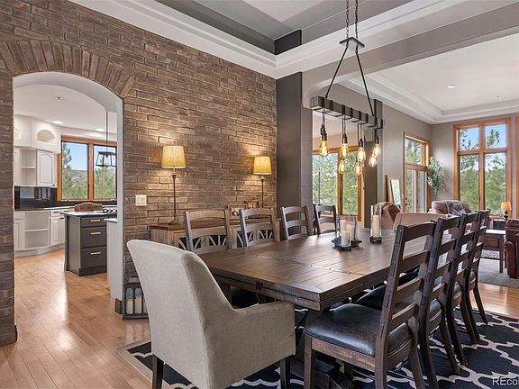 - Description: Framed By An Arched Brick Wall And Warm Wood Flooring, The Dining Room Showcases An Industrial-Style Chandelier And Seamless Flow Into The Adjacent Great Room And Kitchen.