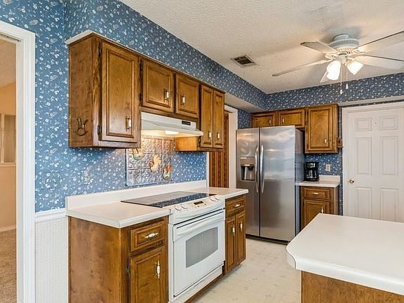 AS IS sale and home needs updating. BRAND NEW ROOF has been ordered and will be put in next couple of weeks. This 3 bed, 2 bath, 1699 sq. ft. home is ready for your personal touch! Built in 1990, this home needs updating (like flooring, new windows as current ones are fogged, and cosmetic updates). But this is your chance to customize the home completely to your liking! You'll have space for vehicles and storage in your 2 car garage. Home includes laundry room, eat-in kitchen with a breakfast bar, master bed and bath with a walk-in closet. Refrigerator, washer, and dryer all convey with sale. The living room, with its wood-burning fireplace, also features a vaulted ceiling. The living and dining rooms are connected, making it a perfect space for entertaining guests. A/C system was replaced in 2018. Enjoy a cup of coffee on the front porch swing or on the the back porch, complete with a ceiling fan above. A lemon and an orange tree in the backyard have yielded much fruit in the past years according to sellers. The taller trees surrounding the backyard privacy fence typically shade the home and backyard during various times throughout the day. Backyard shed also conveys with sale. Call me today to schedule a private viewing!