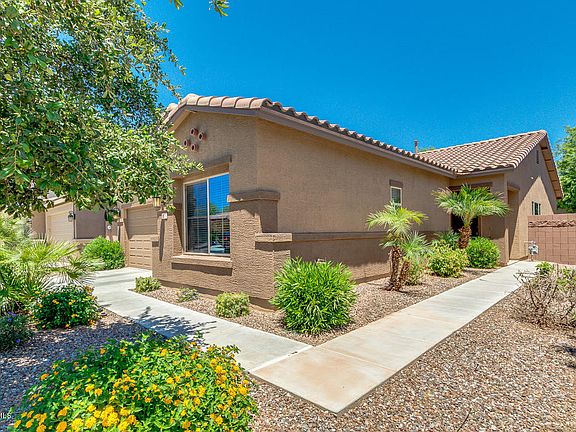 Superb home in the heart of Ironwood Crossing! Three bedrooms plus an open den, split floorplan, entertainment friendly living space with premium kitchen features including granite countertops and staggered upgrade cabinets with crown moulding, master bedroom with full ensuite and a walk in closet, upgrade ceiling fans T/O, secondary bedrooms are generous in size. Inviting curb appeal and a private backyard with a covered patio and extended paver patio for parties and fun! The backyard has fruit trees including blood orange, tangerine, pomegranate, and grapefruit. The lawn is green, the trees are growing, a perfect setting for outdoor days! Ironwood Crossing is amazing with parks and pools and paths! All shopping close by and theaters too. Welcome!